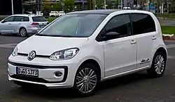 Der VW Up (Eigenschreibweise VW up!, Baureihe VW120) ist ein Kleinstwagen der Volkswagen AG. Er wird im Konzern zur New Small Family gezählt. Das Fahrzeug ist der Nachfolger des VW Fox in Europa. Der Wagen kam am 3. Dezember 2011 auf den deutschen Markt und war ab April 2012 auf den gesamten europäischen Märkten erhältlich. Im Oktober 2023 wurde die Produktion des Fahrzeugs eingestellt.[3] Der Grund waren die verschärften Software-Sicherheitsanforderungen UNECE R 155 und UNECE R 156 für Neuwagen.[4] Ein direktes Nachfolgemodell gibt es nicht, allerdings zeigte Volkswagen im März 2025 mit dem Konzeptfahrzeug ID. Every1 ein Elektroauto, das ab 2027 in Serie gebaut werden und das neue Einstiegsmodell in der Modellpalette des Herstellers sein soll.[5]