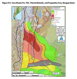 Die „Ölschiefer“-Schichten sind zwischen 60 und 520 Meter dick. Seit 2013 liefen die Vorbereitungen zur Ausbeutung des Vorkommens, bei der nichtkonventionelle Ölfördermethoden wie Fracking zur Anwendung kommen. Das Fördergebiet Vaca Muerte wurde in mehrere Blöcke aufgeteilt. Wintershall ist mit 50 % an einem Joint Venture zur Ausbeutung des Blocks „Aguada Federal“ beteiligt. Die argentinische Regierung hat eine Verbesserung der Infrastruktur versprochen, unter anderem wird eine Bahnverbindung zur Küste geprüft. Im März 2018 wurden täglich 7.600 Kubikmeter Öl und 12.700.000 Kubikmeter Erdgas im Vaca-Muerta-Gebiet gefördert.[1]