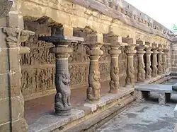 Nicht nur die Außenwände des Tempels sind reich mit Figurenreliefs geschmückt, sondern auch die Innenwände der Umfassungsmauer. Gezeigt werden zumeist Themen aus der Mythologie Vishnus – so z. B. die Rettung der Erdgöttin Bhudevi oder die Tötung des Dämons Hiranyakashipu, aber auch andere Themen und Götter finden sich. Erwähnenswert sind auch die zahlreichen löwenähnlichen Yali-Figuren in der Sockelzone der Säulenkorridors der Einfassung.