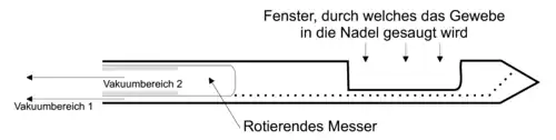 Nachdem der Nadelkern wieder zum Entnahmefenster fährt, kann die nächste Gewebsentnahme in gleicher Weise erfolgen. Durch schrittweises Drehen der Nadel um die eigene Achse (z. B. im Uhrzeigersinn) kann das Gewebe um die Nadel auf Höhe des Entnahmefensters quasi von innen abgetragen werden. Die Entnahme wiederholt sich für jede mögliche Position des Fensters, bis in bis zu 24 Vorgängen (Entnahme in zwei Runden jeweils bei jeder Uhrzeigerstunde) insgesamt bis zu 6 cm³ Gewebe in Zylinderform entfernt wurden.