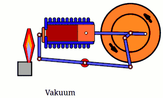 Nur bei der Bewegung des Kolbens vom maximalen Hubraum zum mittleren Hubraum wird mit Hilfe des durch die Abkühlung der Flammengase entstehenden Unterdrucks Arbeit verrichtet. Bei allen anderen Bewegungen des Kolbens ist das Ventil geöffnet.