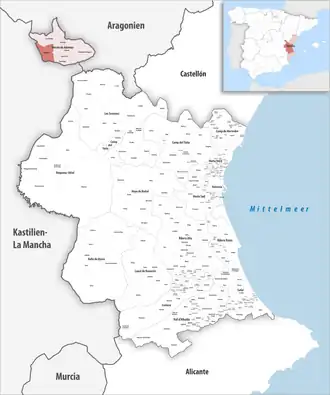 Vallanca liegt etwa 140 Kilometer nordwestlich von Valencia.