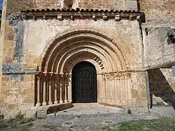 - Die einschiffige Kirche San Esteban entstand – wahrscheinlich als Prioratskirche – im 12. Jahrhundert; das Datum 1188 ist überliefert. Von herausragender Qualität ist das durch eine neuzeitliche Südvorhalle geschützte Tympanon mit der Darstellung Christi als Pantokrator in einer von Engeln gehaltenen Mandorla; seitlich davon sitzen zwei Apostel(?). In der inneren Archivolte thronen die 24 Ältesten der Apokalypse mit Musikinstrumenten, Schriftrollen etc.; der nächste Bogen ist gefüllt mit diversen Figuren (Ritter, Fabeltiere etc.) und die äußere Archivolte zeigt Akanthus-Blattwerk. Den äußeren Rahmen bildet ein Diamantstab.