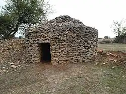 - In der Umgebung stehen mehrere kraggewölbte Trockensteinhütten, die ehemals als Unterstand und Schlafplatz der Wachen über die (fast) reifen Feldfrüchte dienten.