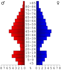 23,7 Prozent der Bevölkerung waren unter 18 Jahre alt, 4,4 Prozent zwischen 18 und 24 Jahre, 24,9 Prozent zwischen 25 und 44 Jahre, 32,2 Prozent zwischen 45 und 64 Jahre. 14,8 Prozent waren 65 Jahre oder älter. Das Durchschnittsalter betrug 44 Jahre. Auf 100 weibliche Personen kamen 105,9 männliche Personen. Auf 100 Frauen im Alter von 18 Jahren und darüber kamen 104,4 Männer.