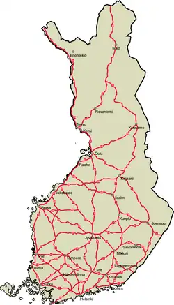 - ↑ Finnische Straßenverwaltung: Straßenstatistik 2006 ( des vom 19. Juni 2008 im Internet Archive) Info: Der Archivlink wurde automatisch eingesetzt und noch nicht geprüft. Bitte prüfe Original- und Archivlink gemäß Anleitung und entferne dann diesen Hinweis. (finn./schwed./engl.)