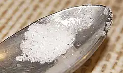 Vanillezucker ist eine Zubereitung mit dem natürlichen Vanillearoma von mindestens 1 g gemahlenen Vanilleschoten oder deren Extrakten auf 16 g Zucker (Saccharose), Vanillinzucker enthält die aromatisierende Beimengung von mindestens 0,17 g Vanillin auf 16 g Zucker.[53] Vanillin wird als Aromastoff in verschiedenen Lebensmitteln verwendet, unter anderem in Speiseeis, Backwaren und Schokolade. Daneben ist Vanillin einer von vielen Duftstoffen bei der Parfümherstellung und zur Geschmacksverbesserung von Pharmazeutika und Vitaminpräparaten, wo er in kleinen Mengen zur Abrundung und Fixierung von süßen, balsamischen Düften verwendet wird.