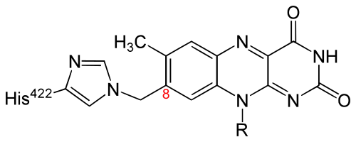 Die prosthetische Gruppe ist für die Enzymaktivität wichtig. Man geht davon aus, dass die kovalente Bindung an das Protein das Redoxpotential des Cofaktors für die Katalyse signifikant erhöht.[7] Hieran ist auch eine Aminosäure des Proteins, L-Aspartat-170, beteiligt. Wahrscheinlich wird FAD an das Apoprotein in einem autokatalytischen Prozess posttranslational verknüpft.[8]