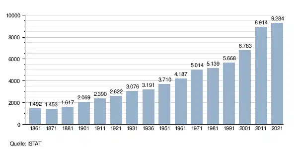 Zwischen 1991 und 2021 stieg die Einwohnerzahl von 5668 auf 9284. Dies entspricht einem prozentualen Zuwachs von 63 %. Aufgrund der Nähe zur Großstadt Mailand siedelten sich in den letzten Jahren viele neue Bewohner an. Mit öffentlichen Nahverkehrsmitteln ist Mailand schnell und komfortabel zu erreichen.