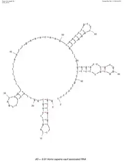 Vaults aus höheren Eukaryonten enthalten auch eine oder mehrere kleine Vault-RNAs (vRNAs, auch vtRNAs) mit 86–141 nt (Nukleinbasen).[12] Die vRNAs befinden sich in den Kappen an den Enden der Vaults.[5] Die Gesamt-Masse der RNA im Vault wird auf 460 kDa geschätzt.[5] Die nicht-kodierende RNA der multiresistenten Vaults kodiert für mehrere regulatorische kleine RNAs (englisch regulatory small RNAs).[13]