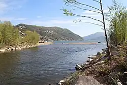 ![]() Der Vedeggio bei Bioggio mit der Mündung im Hintergrund | ||
