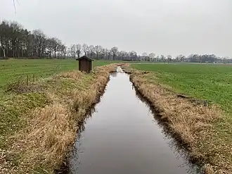 ![]() Die Vehne als Grenzfluss in Wardenburg-Harbern II, an der Korsorsstraße. Die Vehne ist hier die Grenze zwischen den Landkreisen Oldenburg und Cloppenburg. An dieser Stelle befand sich bis in die 1990er Jahre eine Staustufe. | ||