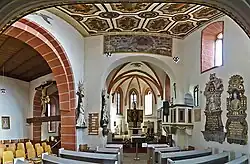 Der Triumphbogen zwischen Langhaus und Hohem Chor zeigt eine Darstellung des Jüngsten Gerichts vom Ende des 15. Jahrhunderts. An der Decke des Langhauses befinden sich 16 Kassetten aus der Renaissance.
