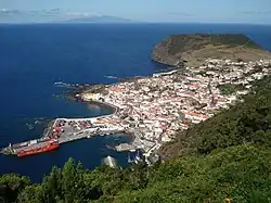 Zu den markantesten Gebäuden der Stadt gehören die Pfarrkirche Igreja de São Jorge mit angeschlossenem Museum, die 1460 erbaut und im 17. sowie im 18. Jahrhundert umgebaut wurde, sowie das Rathaus (Câmara Municipal) aus dem 17. Jahrhundert.[5] Von der Stadtmauer, die zum Schutz gegen Überfälle von Piraten errichtet wurde, ist unter anderem am Hafen das Stadttor Portão do Mar aus dem Jahre 1799 erhalten.[6] Von der im 17. Jahrhundert erbauten Festung Forte de Santa Cruz, die 1965 im Zuge der Erweiterung der Hafenanlagen der Stadt teilweise abgetragen wurde, stehen noch Teile der Mauern mit einem Scharwachtturm. Die 1644 errichtete Festung Forte de Nossa Senhora da Conceicão wurde zu Beginn des 21. Jahrhunderts renoviert. Auf dem Gelände der Festung wurde anschließend das moderne Kultur- und Veranstaltungszentrum Auditório Municipal e Centro Cultural das Velas erbaut.