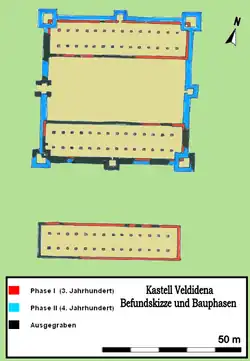 Die mehrphasige spätrömische Befestigungsanlage stand nördlich des Stifts Wilten. Sein Areal erstreckte sich vom Fuße des Bergisels im Süden bis zum Südring im Norden, dem Sillufer im Osten und dem Verlauf der Neuhauserstraße im Westen. Vermutlich wurden zuerst die drei Lagerhallen errichtet, von denen zwei später – entweder unter der Herrschaft des Konstantin I. oder von Valentinian I. – zusätzlich mit einer turmbewehrten Mauer umgeben wurden.