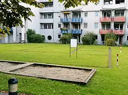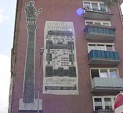 - ↑ Entfernungsangabe Meilenstein Wiesengasse: 110.000 Doppelschritte (ca. 165 km) bis Augsburg.