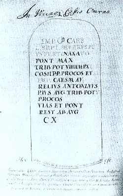 Die Entfernungen zwischen den größeren Siedlungen wurden auf Meilensteinen angegeben (Entfernungsangabe eines Meilenstein nahe Veldidena: 110.000 Doppelschritte (ca. 165 km) bis Augusta Vindelicum (Augsburg)). Einer von ihnen steht noch in der Wiesengasse in Amras auf seinem ursprünglichen Platz, ein anderes Exemplar, aus der Zeit des Septimius Severus, wurde im 18. Jahrhundert am Sonnberg entdeckt (siehe Abbildung).[3]