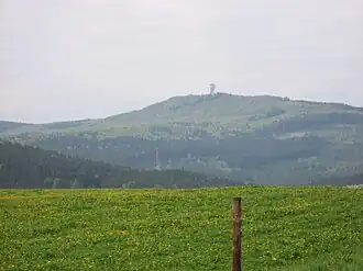 Auf dem Gipfel steht ein Radar- und Funküberwachungsturm der tschechischen Streitkräfte. Dieser wurde während des Kalten Krieges erbaut und wird weiterhin genutzt.[1] Heute beherbergt der Turm Radar- und Funksysteme der militärischen Flugsicherung zur Luftraumüberwachung in der Tschechischen Republik und ihrer Umgebung. Die Abschottung des Gebiets als militärisches Sperrgebiet wurde aufgehoben, wenngleich der Gipfel noch immer eingezäunt ist und daher nicht betreten werden kann. Von der Turmanlage aus besteht Sichtkontakt zu den ehemaligen Überwachungsstellungen auf den Gipfeln des Havran (Rabenberg) im Norden und dem Čerchov (Schwarzkopf) im Süden.