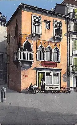 Errichtet wurde das Gebäude entweder Anfang oder Mitte des 15. Jahrhunderts[1] auf einer Fläche von wenig mehr als 70 m² von der vermögenden Familie Del Bello. Schriftliche Überlieferungen aus der Bauzeit sind nicht bekannt, jedoch erscheint das Gebäude bereits in einem Gemälde von Jacopo Tintoretto. Eine Skizze des Architekten Peter von Nobile aus dem Jahr 1815 zeigt eine Venezianerin nebst einer Gebäudegruppe auf dem Tartini-Platz.