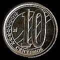 | 10 Céntimos | Kupfer/Nickel | 21 mm | Nennwert, Blumenkranzmotiv, perlenschnurartige Randverzierung | Staatswappen, Ausgabeland, perlenschnurartige Randverzierung |
