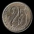 | 25 Céntimos | Nickel | glatt | Nennwert der Münze, die acht Sterne und einige Wellen, welche die Streifen auf der Nationalflagge repräsentieren | Staatswappen und Ausgabeland | Medio |
