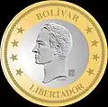 | 1000 Bolívar | Kern: Nickel, Randstreifen: Messing | 24 mm | Porträt Simon Bolivars, Aufschrift „Bolivar Libertador“, hexagonale Umrandung | Nennwert, Staatswappen, Ausgabeland, perlenschnurartige Randverzierung |