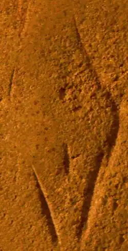 - ↑ Die Frage, ob die Ritzlinien auf dem Sandstein die Fortsetzung einer langen Tradition oder eine zufällige Parallelerscheinung darstellen, muss offenbleiben; vergleiche Klaus Gerken: In: Fundchronik Niedersachsen 2011, S. 234.