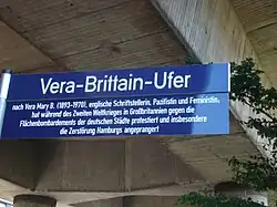 Seit 2014 gibt es in Hamburg-Mitte ein „Vera-Brittain-Ufer“. Der Text auf dem entsprechenden Straßenschild lautet: „Vera-Brittain-Ufer: nach Vera Mary Brittain (1893–1970), englische Schriftstellerin, Pazifistin und Feministin; hat während des Zweiten Weltkriegs in Großbritannien gegen die Flächenbombardements der deutschen Städte protestiert und insbesondere die Zerstörung Hamburgs angeprangert“.