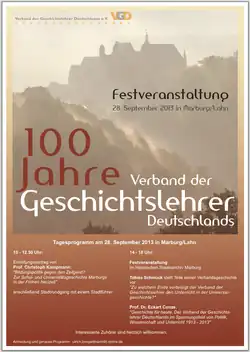 1911 gründeten die Leipziger Oberlehrer Fritz Friedrich und Paul Rühlmann die Zeitschrift Vergangenheit und Gegenwart. Zeitschrift für den Geschichtsunterricht und staatsbürgerliche Erziehung in allen Schulgattungen, in der Anfang 1913 ein Aufruf veröffentlicht wurde, der zur Gründung des „Verbandes Deutscher Geschichtslehrer“ in Marburg an der Lahn am 28. und 29. September desselben Jahres führte. Dieser Verband wuchs bis 1914 von 40 auf 240 Mitglieder und erreichte nach dem Aufbau mehrerer Landes- und Ortsgruppen 1927 mit 1.226 Mitgliedern seine größte Zahl.[1] Bei der Gründung 1913 wurde als Verbandszweck angegeben, die Forschungen der Geschichtswissenschaft für den Schulunterricht nutzbar zu machen, die Lehrpläne kritisch zu sichten, die Aus- und Fortbildung der Geschichtslehrer zu begleiten und Unterrichtsmaterialien (Quellen) zu erschließen. Bereits zu dieser Zeit verstand er sich als Korrektiv der Schulverwaltungen und auch gegen den wilhelminischen Zeitgeist, dem aus einer konservativ-idealistischen Position verurteilten „Triumphzeitalter der technischen Fortschritte“.