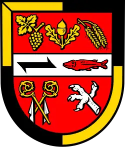 Das Verbandsgemeindewappen setzt sich aus Teilen der Wappen der fünf dazugehörigen Orte zusammen. Es gliedert sich von oben nach unten und heraldisch betrachtet von rechts nach links (sonst umgekehrt):