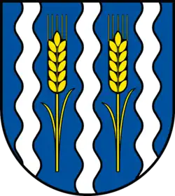 Blasonierung: „In Blau drei silberne Wellenpfähle, dazwischen zwei goldene Ähren mit je zwei Halmblättern.“[3]