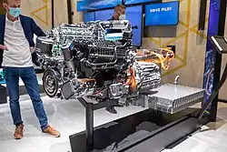 Die Verbrennungskraftmaschine ist eine Wärmekraftmaschine (Thermische Fluidenergiemaschine), die durch innere Verbrennung von Treibstoff mechanische Arbeit verrichtet. Weitere Verallgemeinerungen sind Fluidenergiemaschine und Kraftmaschine. Im Unterschied etwa zur Dampfmaschine und dem Heißluftmotor finden alle Arbeitsprozesse in einem Arbeitsraum statt, dem Arbeitszylinder[1]. Dabei wird chemische Energie aus einem Kraftstoff-Luft-Gemisch über die Temperatur des Arbeitsgases in Druck (Kraft) und Ausdehnung (Weg) und damit in mechanische Energie (Kraft mal Weg) umgewandelt.
