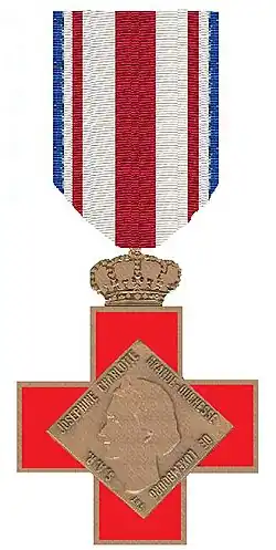 Die Medaille besteht aus einem gleicharmigen, rot-emaillierten und bekrönten Kreuz. Auf der Vorderseite ist in einem Damenschild in Rautenform das Wappen der Großherzogin dargestellt. Die Rückseite zeigt im Damenschild in Rautenform das Porträt der Großherzogin.