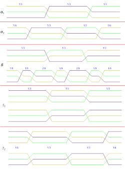 Da dies zu einer unterschiedlichen Abfolge der Phasen am Anfang und Ende der Leitung führt, wird stattdessen oft mit dem α2-Schema gearbeitet, bei dem die 1/3-Verdrillung in zwei zu je 1/6 aufgeteilt wird.