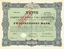 In dieser Zeit gelang es, das Unternehmen zu einem der bedeutendsten montanindustriellen Konzerne in Deutschland zu machen. Die Aktien der Vereinigten Königs- und Laurahütte gehörten zu den sichersten deutschen Anlagepapieren und die Bilanzen des Unternehmens waren ein wichtiger Gradmesser für die wirtschaftliche Entwicklung in Deutschland überhaupt.[1]