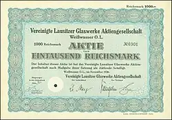 - ↑ Ernst Heinson: Reichsausstellung Schaffendes Volk. 1937, S. 133 (archive.org). „Vereinigte Lausitzer Glaswerke, Aktiengesellschaft, Berlin SO 36, Lausitzer Str. 10, Hohlglas- und Pressglasfabrikate“