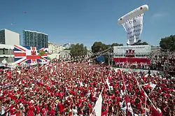 Die Staatsbürger des Vereinigten Königreichs werden Briten genannt. Die Bevölkerung verteilte sich 2011 auf die einzelnen Regionen wie folgt: England 83,9 Prozent, Schottland 8,5 Prozent, Wales 4,8 Prozent und Nordirland 2,8 Prozent.[30] Zwischen 2001 und 2011 wuchs die Bevölkerung mit einer durchschnittlichen jährlichen Rate von 0,7 Prozent.[31] Das Land gehört zu den dichter besiedelten Ländern der Welt, wobei England deutlich dichter bevölkert ist als Schottland und Wales.