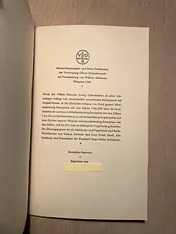 - ↑ Erasmushaus, Haus der Bücher AG, Basel; Katalog 842: Die Veröffentlichungen für die Vereinigung Oltner Bücherfreunde VOB. Basel 1986.
