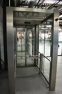 Personenschleusen sind Kabinen mit zwei Zutrittstüren. Der Grundriss der Schleuse kann verschiedene Formen annehmen, z. B. rund oder eckig und ist in der Regel so gestaltet, dass nur eine Person Platz in der Schleuse hat. Um festzustellen, ob auch tatsächlich nur eine Person die Schleuse betreten hat, gibt es verschiedene Mittel: Kontaktmatten in der Schleuse, Lichtschranken und Waagen.