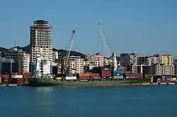 Der Hafen Durrës ist der wichtigste Hafen des Landes, verantwortlich für rund 90 % des Seehandels und rund zwei Drittel der Importe und Exporte nach Albanien (2006). Weitere Seehäfen bestehen in Shëngjin, Vlora und Saranda.[73] In Durrës und Vlora wurden, räumlich getrennt von den bestehenden Hafenanlagen, Öl- und Gasterminals gebaut.[74] Die albanischen Häfen – allen voran Durrës – sind auch für die benachbarten Binnenländer von Bedeutung.[75] Binnenschiffsverkehr besteht praktisch nicht.[74] Die Buna gilt als einziger schiffbarer Fluss des Landes und wurde in der Vergangenheit auch für Personen- und Warentransport nach Shkodra genutzt (zum Teil nur bis zum Kloster von Shirq).[2]
