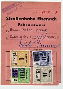 Am 1. Januar 1950 wird der Straßenbahnbetrieb vom Elektrizitätswerk getrennt und zunächst als Kommunales Wirtschaftsunternehmen (KWU) weitergeführt. Bereits zum 31. März 1951 werden die KWU aufgelöst und die Straßenbahn wird als VEB (K) Städtischer Verkehr Eisenach selbstständig.