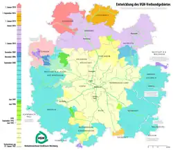 Der Landkreis Lichtenfels entschied sich Mitte Juli 2014 für einen Beitritt zum Verbundgebiet und ist seit dem 1. Januar 2015 ein Teil des VGN.[8][9] Zum 1. Januar 2018 trat der Landkreis Haßberge vollständig dem VGN bei, womit das Verbundgebiet eine Fläche von 15.843 km² aufweist.[10]