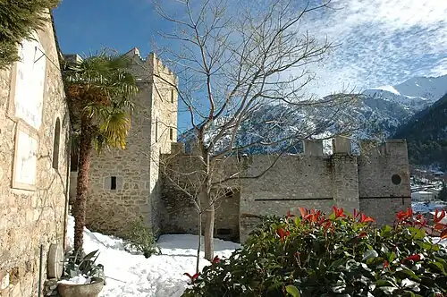 - Von der mittelalterlichen Burg (castell) steht nur noch der auf quadratischem Grundriss erbaute Bergfried (donjon), welcher zusammen mit dem kleinen Glockenturm der Kirche den Ort überragt.