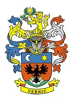 Die Familie Vernich (de Turan, nach dem Ort Turanj) stammt aus der Region des Agramer Komitats. Die Geschichte der Familie reicht bis ins 13. Jahrhundert zurück. Juraj Vernich, Notar der ungarischen Kammer, erhielt am 22. Mai 1630 von König Ferdinand II. einen Adels- und Wappenbrief. Die Familie Vernich führt das Adelsprädikat „de Turan“ (Kiš Turanjska).[1] Die Grafen derer von Vernich waren sehr wohlhabend und einflussreich. Sie besaßen mehrere Schlösser, Wälder, viele Ländereien (u. a. Turanj)[2] und waren eine der Herrscherfamilien von Turopolje.[3]