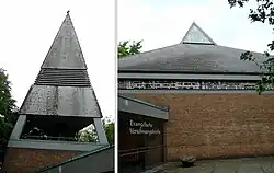 Die evangelische Versöhnungskirche in Bremen-Hemelingen, Ortsteil Sebaldsbrück, Beim Sattelhof 2, stammt von 1966.
