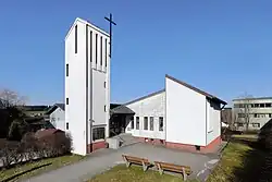 Bereits im mittleren 16. Jahrhundert hatte sich in Frankenmarkt wie allgemein in der Region bis zum Einsetzen der Gegenreformation um 1620 das Luthertum als vorherrschendes Bekenntnis etabliert. Erst mit der Flüchtlingsbewegung gegen Ende des Zweiten Weltkriegs und des damit verbundenen verstärkten Zuzugs von Protestanten namentlich aus Siebenbürgen kam es wieder zur Bildung einer eigenen Kirchengemeinde, die zunächst in der katholischen Pfarrkirche Frankenmarkt Gastrecht erhielt. Erst in den Jahren 1971 bis 1973 konnte nach Plänen des Architekten Gerhard Keller mit finanzieller Unterstützung durch die Evangelische Landeskirche in Württemberg und durch den Arbeitseinsatz des Evangelischen Berufstätigenwerks in Württemberg e.V. (EBW) der Kirchenneubau als eine der sogenannten „Siebenbürgerkirchen“ errichtet werden. Es entstand eine einfache, asymmetrisch aufgebaute Saalkirche mit seitlich gesetztem Turm und einem seitlichen Anbau, der Sakristei und Orgelempore enthält. Der Kirchenraum ist durch das über dem Altarraum abgesenkte Schleppdach bestimmt.