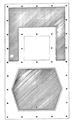 Der Blick auf den Grundriss der Anlage zeigt, dass Kirche und Gemeindezentrum jeweils von 16 Säulen umgeben werden. Diese bilden zwei Quadrate um Kirche und Gemeindezentrum, wobei die fünf Säulen in der Mitte zu beiden Quadraten gehören. Die strenge Gesamtanlage wird noch dadurch unterstrichen, dass die Außenfenster von Kirche und Gemeindezentrum als Lichtbänder unter die Dächer gerückt sind. Nur im Innenhof und auf der nicht sichtbaren Außenseite sind größere Fensterflächen angeordnet. Der Innenhof ist dem Gesamtcharakter der Anlage entsprechend gestaltet worden.