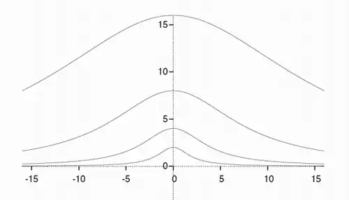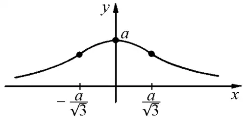 Eine skalierte Version der Kurve entspricht der Wahrscheinlichkeitsdichtefunktion der Cauchy-Verteilung. Dies ist die Wahrscheinlichkeitsverteilung der Zufallsgröße , die durch das folgende Zufallsexperiment definiert ist: Für einen festen Punkt oberhalb der -Achse wird zufällig (Gleichverteilung) eine Gerade durch gewählt; sei die Koordinate des Schnittpunkts dieser Geraden mit der -Achse. Die dadurch bestimmte Cauchy-Verteilung ähnelt der Normalverteilung, aber aufgrund der Heavy-tailed-Verteilung gibt es keinen Erwartungswert gemäß den üblichen Definitionen, trotz der Symmetrie. Das bedeutet, dass die -Koordinate des Schwerpunkts der Fläche zwischen der Kurve und ihrer Asymptote nicht wohldefiniert ist, obwohl die Fläche symmetrisch und ihr Inhalt endlich ist.