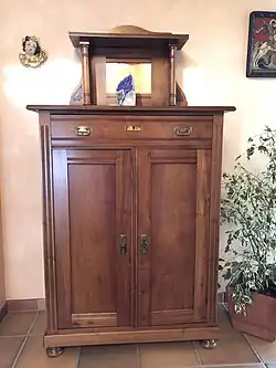 Durch die geringe Höhe konnte das Möbel auch in einfacheren Häusern mit niedrigen Räumen aufgestellt werden, bot andererseits aber mehr Stauraum als eine Kommode, trotzdem konnten auf der Deckplatte und dem Aufsatz noch Ziergegenstände ihren Platz finden. Hinter den beiden Türen konnte man z. B. Geschirr aufbewahren, in der Schublade Tischwäsche. Typischer Standort war das Wohnzimmer.