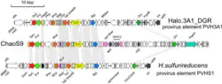 - Halobacterium-Phage ChaoS9 [Halovirus ChaoS9] – Genomlänge 55.145 bp[7]